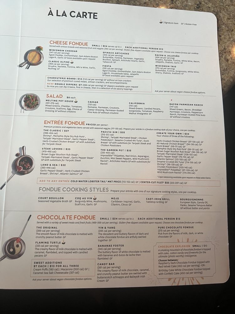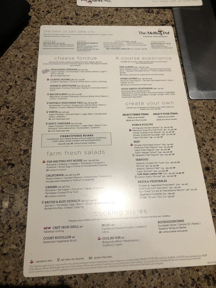 At The Melting Pot Salt Lake City, located at 340 S Main St, you embark on a unique dining experience that revolves around communal fondue. The menu is thoughtfully crafted, offering a diverse selection that caters to both meat lovers and vegetarians alike. Start your meal with a choice of two salads: whether it's the refreshing Melting Pot House Salad or the rich Caesar Salad, each option is designed to enhance your culinary journey.